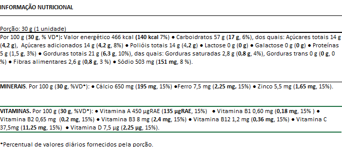 ALÉRGICOS: CONTÉM OVO. PODE CONTER CASTANHA-DE-CAJU, CASTANHA-DO-PARÁ E AVEIA (SEM GLÚTEN).